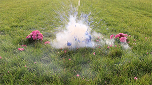 I reimplant three flowers from three really beautiful gardens on a field. Then i blow them up. First the pink one then the blue one and as the third a pink one again.