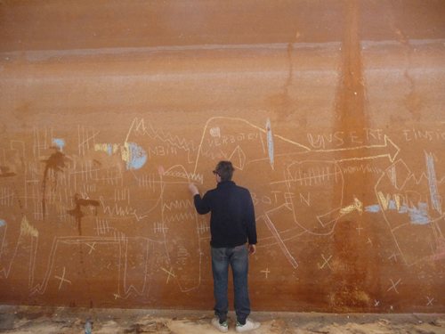 Berliner Künstler Markus Butkereit auf die Rückseite des Hörsaals 5 installiert...